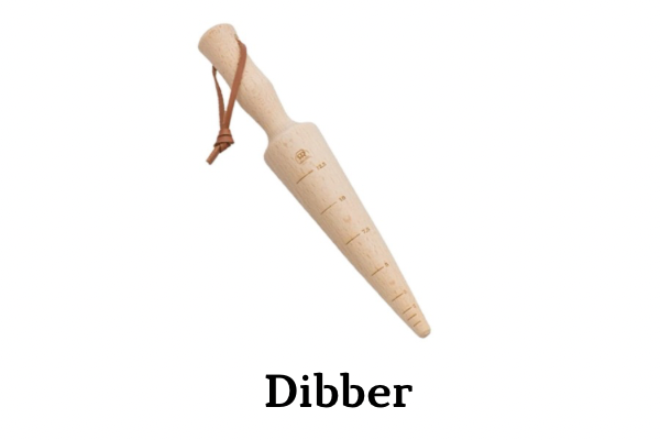 A dibber is a simple but essential gardening tool for planting seeds and bulbs with precision. Helps plant seeds at the perfect depth every time, which is especially helpful for beginners or anyone growing small plants like herbs or flowers.